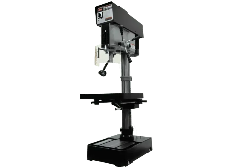 Solid design and construction deliver precision operation and control. JET 20” Variable Speed Drill Presses combine variable speed spindles with a massively constructed head that increases accuracy and rigidity. That’s all on top of a steel column and a heavy-duty cast iron base.