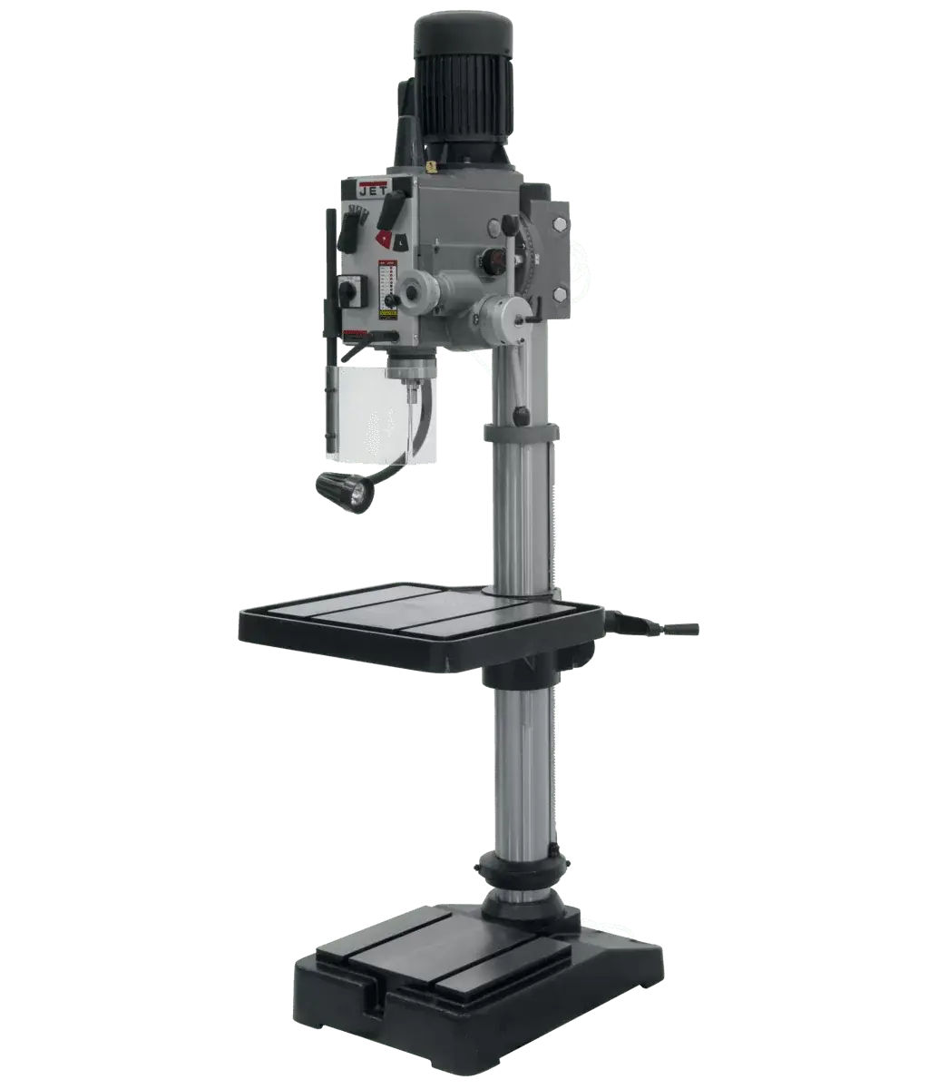 Achieve precision drilling from a design that includes an easy-to-read internal depth gauge, three power down feeds, built-in spindle lock and calibrated fine down feed. JET backs this reliable drill press with a Two Year Warranty.