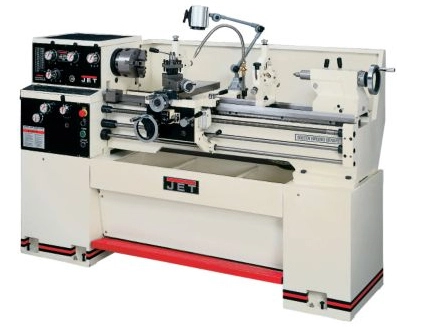 The JET Geared head engine lathe design features precision bearings supporting the hardened and ground spindle and splined, instead of keyed shafts are utilized in the constantly oiled gearbox.
