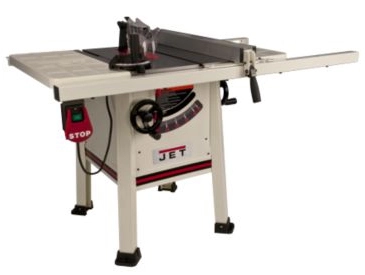 The JET ProShop Table Saw offers features you expect from a high-end cabinet saw, in the compact design of a contactor-style machine. The transparent blade guard has independent leaves, and the quick release riving knife reduces chance of kickback. A low profile riving knife is included for non-through cuts. The exclusive ProShop fence system is available in 30” or 52” rip capacity.