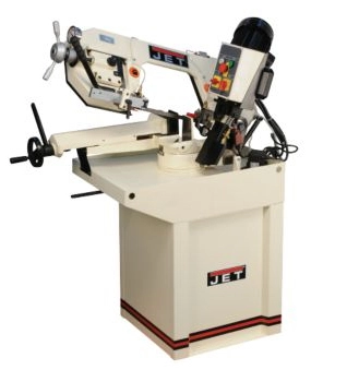 JET Mitering Horizontal bandsaws unique design features a swiveling head while the base remains stationary. This allows the stock to remain same position while making accurate crosscuts and miters