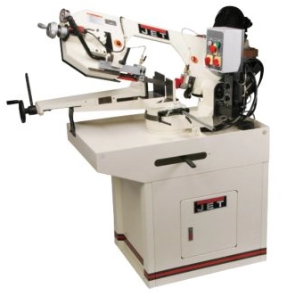 JET Mitering Horizontal bandsaws unique design features a swiveling head while the base remains stationary. This allows the stock to remain same position while making accurate crosscuts and miters.