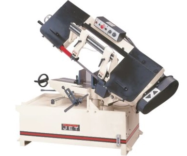 JET Mitering Horizontal bandsaws unique design features a swiveling head while the base remains stationary. This allows the stock to remain same position while making accurate crosscuts and miters.