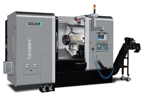 The TMXMY/S mill turn lathes are true slant-bed lathes with all-digital drives and motors and absolute encoders on all linear axes. The addition of the Y-axis allows you to machine a pocket with straight walls and flat bottoms or perform off-center machining operations with just a click of a box.