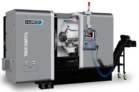 The TMXMY/S mill turn lathes are true slant-bed lathes with all-digital drives and motors and absolute encoders on all linear axes. The addition of the Y-axis allows you to machine a pocket with straight walls and flat bottoms or perform off-center machining operations with just a click of a box.