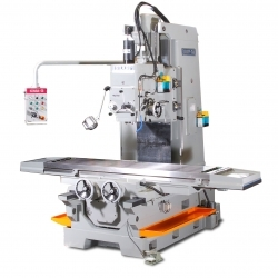 Heavy duty vertical bed mill equipped with geared head spindle and massive hardened and ground bed ways for heavy milling