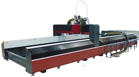 Accurate waterjet cutting machine equipped with 4 axis I.T.C Intelligent Taper Control with Touch Probe and Anti-Collision devices.