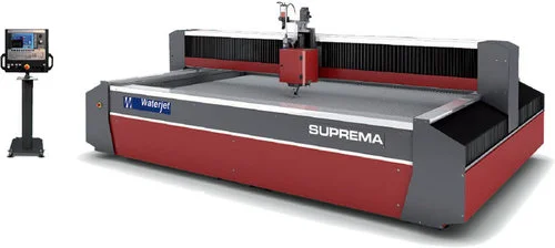 Accurate waterjet cutting machine equipped with 4 axis I.T.C Intelligent Taper Control with Touch Probe and Anti-Collision devices.